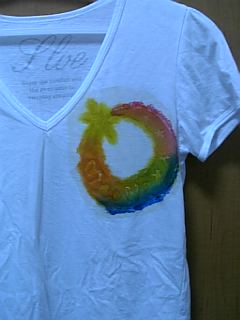 型を彫り、Tシャツに置いてその上から糊を乗せます。