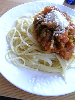 ミートソースは、昨日奮発して買った豚ミンチを使い。