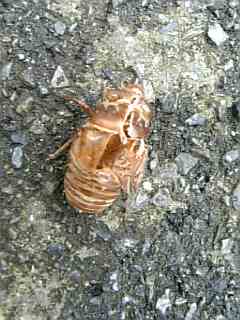 朝から、アスファルトに蝉の抜け殻発見