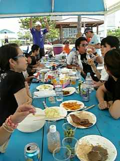 なので、ハチはビーチのテーブルで初めまして人たちとゆんたく。