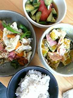 雑穀いりご飯とトマト・きゅうりの浅漬け・野菜炒め・パンプキンサラダでした。